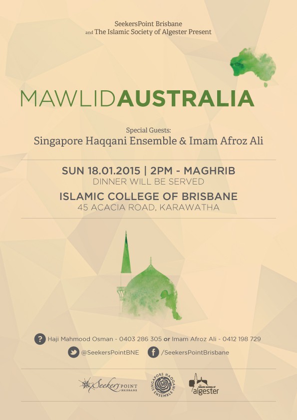 Time: 7.00pm sharp Date: Tuesday 2 December 2014 Venue: Islamic College of Brisbane - 45 Acacia Road