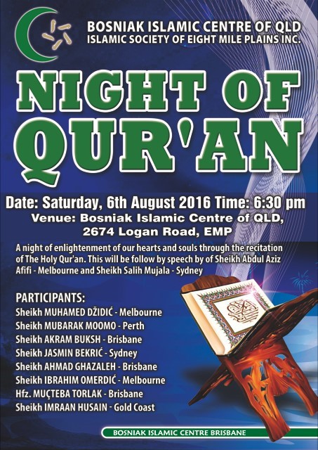 Time: 7.00pm Date: Tuesday 19th July 2016 Venue: Islamic College of Brisbane - 45 Acacia Road
