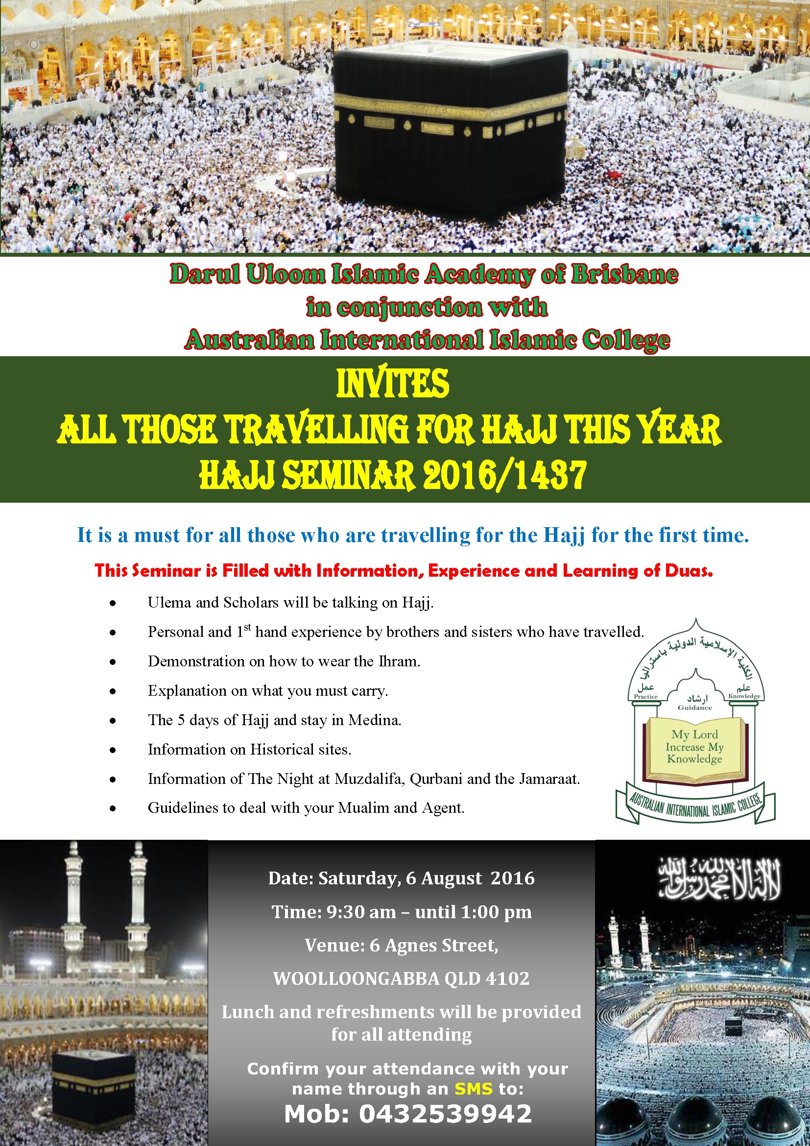 Time: 7pm Date: TBA Venue: Islamic College of Brisbane - 45 Acacia Road