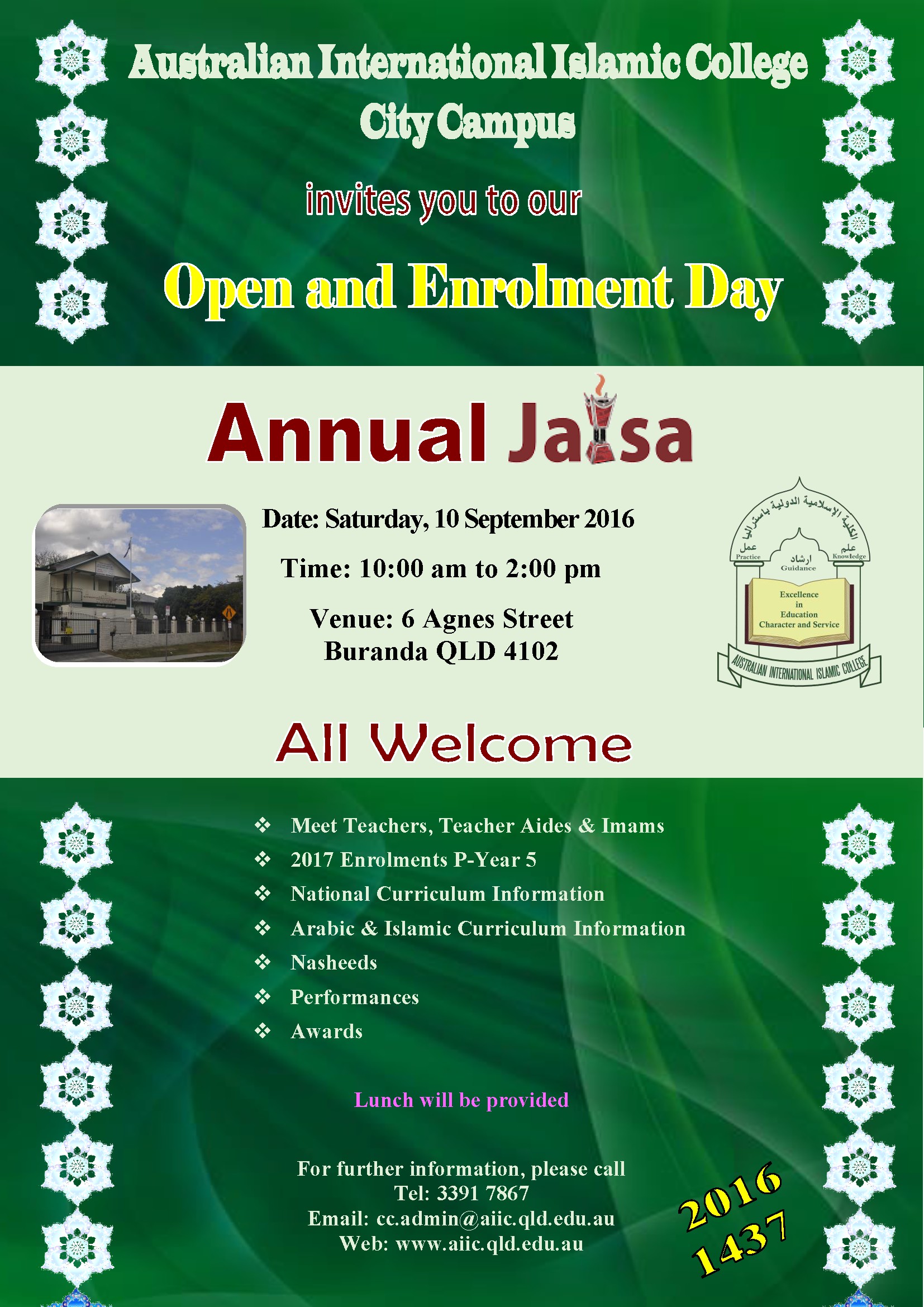 Time: 7pm Date: TBA Venue: Islamic College of Brisbane - 45 Acacia Road